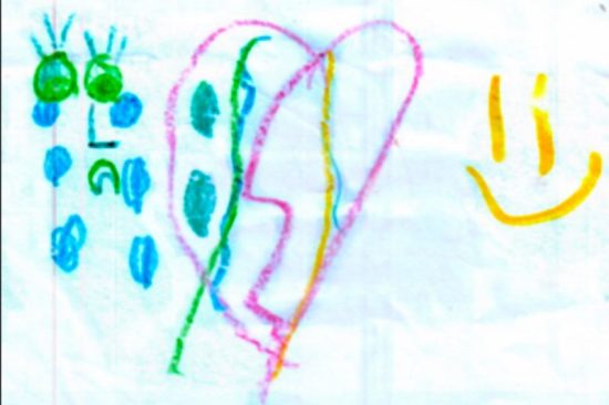 For young children, divorce permeates every aspect of their life. The many changes may be overwhelming. A 4-year-old girl draws divorce: On one side is a sad face with tears of blue and green eyes peeking through. A heart in the middle shares the same tears and several dividing lines. The other side shows a simple happy face in a cheerful color. Is this her rendition of ‘before’ and ‘after’ the divorce? Regardless, there is a stark difference in each side of the page. These are big feelings for a little girl.