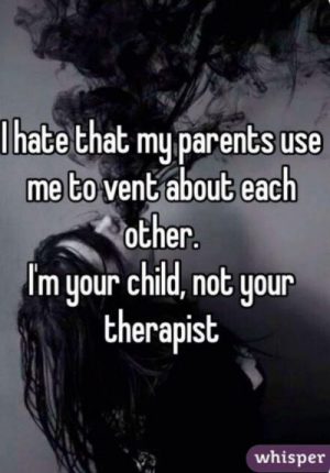 An adolescent shares their thoughts on hearing each parent vent about the other. Divorce is between the parents and about the child. Involving the child in the adult matters of divorce is difficult and unfair. Keep in mind, the child is experiencing emotions about the major changes happening in their world. Hopefully, a relative is helping this teen.