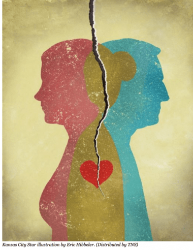Children are a part of both parents. The red heart appearing front and center is prominent. This artwork demonstrates the basis of the family unit. Divorce does not change that. Requesting a child to reject one parent is asking the child to give up part of who they are.