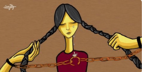 A graphic representation of how the child may experience parental divorce. This girl is being ‘pulled’ by each parent to different sides. A chain is attached to both parents and strategically placed over her heart. Is this symbolic of the emotional pull she is experiencing? Large white tears complete this unfortunate presentation of divorce.