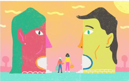 A thoughtful representation of divorce. Two children in between two parents. Larger objects typically represent bigger feelings and emotions. Divorce is between the parents and about the child! An article discussing children and divorce is available at: NPR.org https://www.npr.org/2019/04/24/716703920/what-if-we-lived-in-two-houses-talking-kids-through-divorce