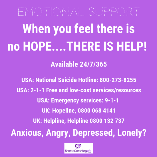 A horrible thought for anyone.  An especially terrible situation for someone who is just trying to be a parent to their child.  Please seek emotional support if you are struggling with your separation or custody matter.  HELP IS AVAILABLE 24/7/365 all over the world. Hope is a phone call away! Suicide hotline United States:  800.273.8255  Hotline numbers throughout the world: https://www.facebook.com/sharedparentingconfessional/photos/a.1435086570084813/2691597091100415/